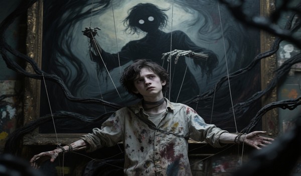 Les couleurs disparaissent, remplacées par des scènes macabres et des silhouettes inquiétantes.